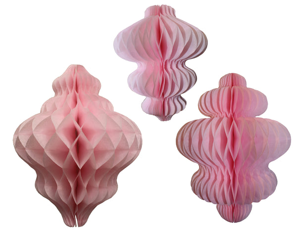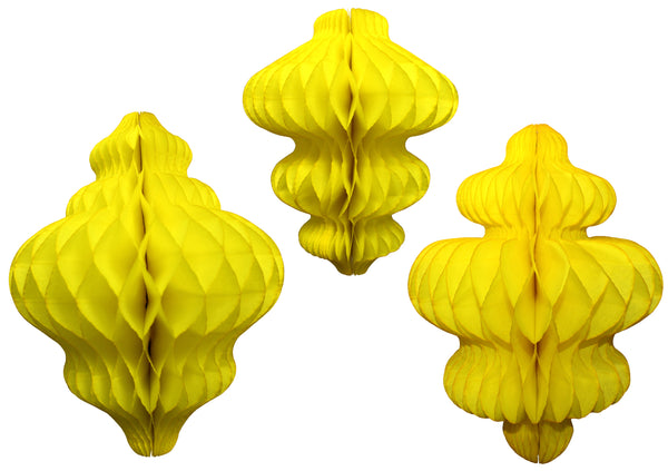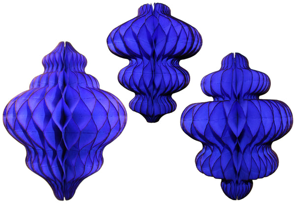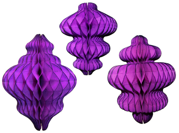 This three-piece collection features honeycomb tissue paper hanging decorations in complementary vintage-inspired color palettes, perfect for winter parties, holiday celebrations, and festive gatherings. Each set includes a distinctive shape: an 11-inch lantern, a 10-inch chandelier, and an 8-inch spinning top ornament. These elegant party decorations add a charming touch to winter birthdays, holiday parties, Christmas celebrations, New Year's Eve events, and winter weddings. The honeycomb tissue paper construction creates a stunning 3D effect that catches the light beautifully. These decorations arrive flat-packed for easy storage and shipping, complete with pre-attached hanging strings and adhesive tabs for simple assembly and display. Ideal for creating a festive winter wonderland atmosphere at any celebration. Proudly manufactured in the USA by Devra Party.
